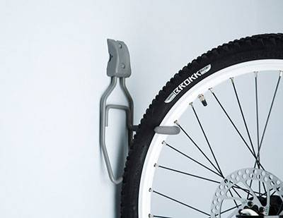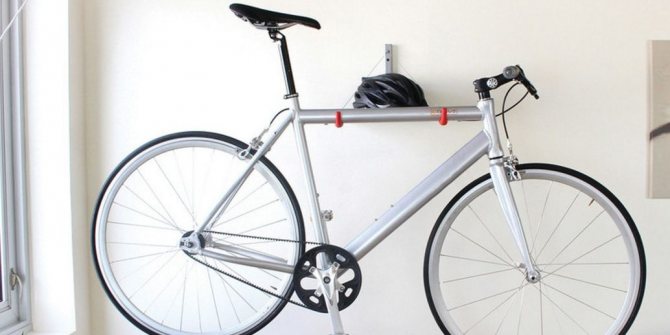 Le plus souvent, ils essaient de placer le vélo sur le mur. Il y a plusieurs explications à ce sujet. Tout d'abord, pour mettre en œuvre cette idée, des attaches simples sont utilisées, qui peuvent être achetées à peu de frais dans un magasin ou fabriquées seules. La structure est fixée principalement en position horizontale, ce qui permet de ne pas déformer les éléments. Le retrait est très rapide et le caoutchouc est conservé longtemps.