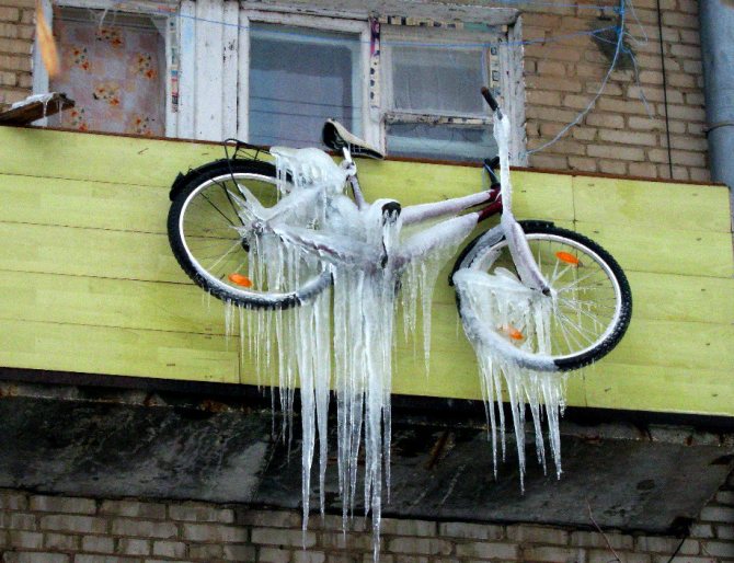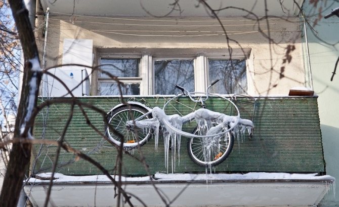 - le rangement nécessite un balcon chauffé ou au moins vitré. S'asseoir sur un balcon non vitré équivaut à être à l'extérieur. En hiver, cela entraîne des conséquences négatives pour le vélo.