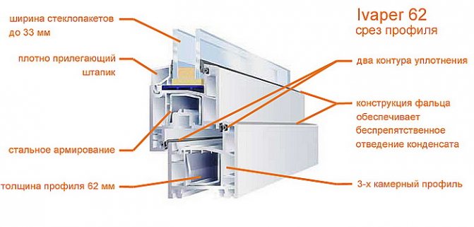 Par exemple, il est peu probable que la série IVAPER 62 soit adaptée aux baies vitrées de grande surface dans un bâtiment résidentiel privé. Pour réduire les pertes de chaleur à un niveau acceptable, dans de tels cas, il est recommandé d'utiliser des systèmes Ivaper d'une largeur de 74 mm. ou 82 mm. Mais lors du vitrage de balcons, de loggias, de groupes d'entrée, d'ateliers ou d'entrepôts, vous pouvez commander en toute sécurité des fenêtres assemblées à partir de systèmes à 3 chambres avec une profondeur d'installation de 62 mm.