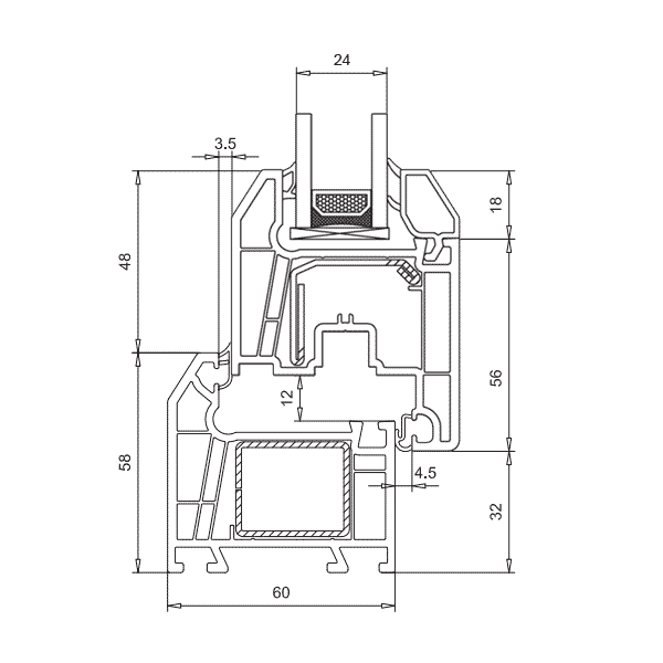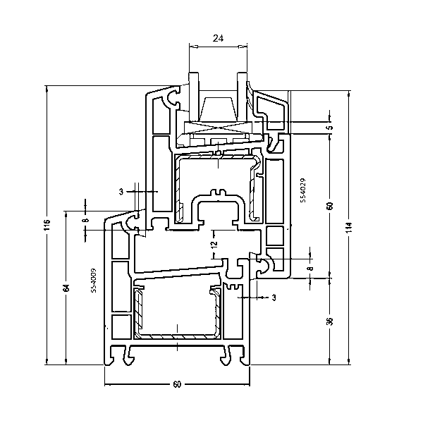 - épaisseur 60 mm ; - système à quatre chambres; - isolation thermique 0,70 m2 * C / W; - renfort en acier standard; - mastic avec chevauchements de trois types, blanc, gris, noir; - Protection anti-effraction - WK3, isolation acoustique classe B ; - étanchéité à l'air jusqu'à la classe A.