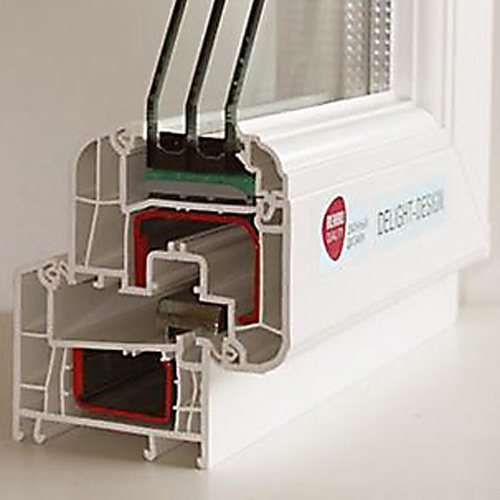 - profil à cinq chambres pour le prix de trois; - profondeur 70 mm, mais la structure n'est pas lestée, car les faces avant des profilés ont des biseaux d'origine ; - excellente isolation thermique et phonique; - isolation thermique 0,85 m2 * C / W; - isolation double chevauchement, en trois couleurs; - double protection contre les courants d'air, la poussière de la rue.