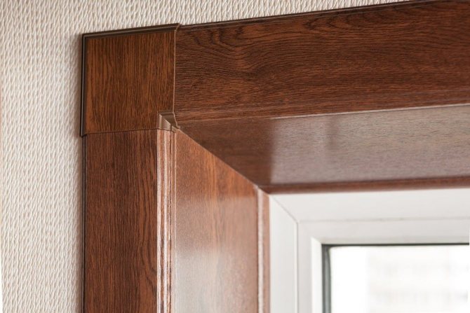 Les plateaux en MDF modernes attirent le prix le plus bas. De plus, leur assortiment est assez large: des éléments droits et arrondis peuvent être utilisés dans la base. La partie supérieure est recouverte d'un film spécial, qui vous permet de styliser des cadres inhabituels. En plus de la version monochromatique, vous pouvez facilement trouver des plateaux en MDF avec une imitation de surfaces en bois, en pierre et en métal. Le seul inconvénient de tels produits est l'impossibilité de les utiliser à l'extérieur. Même avec une courte exposition à l'humidité, la base (MDF) se détériorera rapidement et devra être remplacée. Ces plateaux ne peuvent être utilisés que pour l'encadrement de fenêtres ou de portes.
