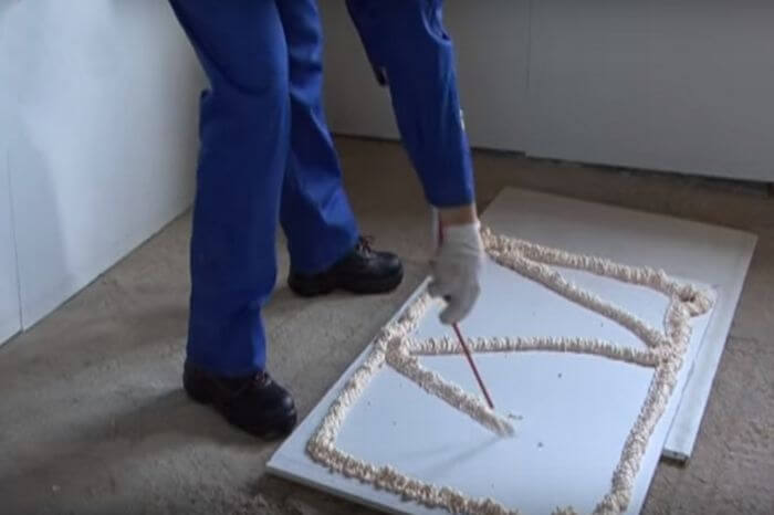 La solution est étalée avec une spatule sur la surface de la feuille, en affectant son centre et son périmètre. Dans ce cas, la surface totale de la colle devrait affecter environ 40 à 45 % de la mousse.