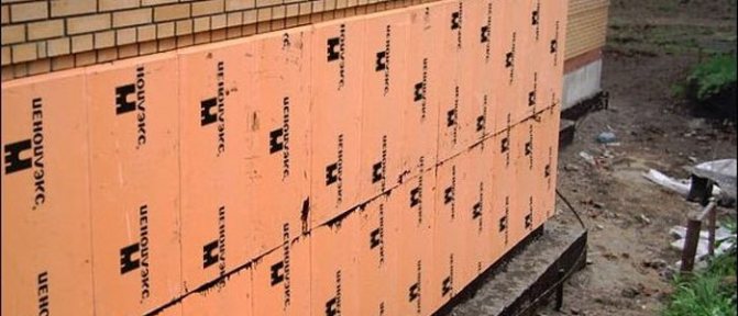 - Le coffrage, le renforcement et le coulage de la fondation à partir de dalles sont réalisés. Une fois la fondation durcie, le coffrage est retiré. La fondation est soumise à une isolation thermique supplémentaire. Penoplex est posé sur les parois latérales.