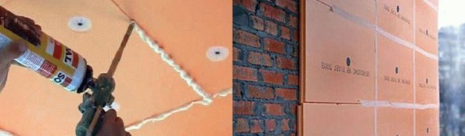 La mousse de montage est utilisée comme fixation supplémentaire pour l'isolation thermique à l'aide de chevilles ou de vis autotaraudeuses. Ils aident à sceller les joints de l'isolant et améliorent l'adhérence à la base. La mousse est appliquée sur la dalle par analogie avec des clous liquides: le long du périmètre et au centre.