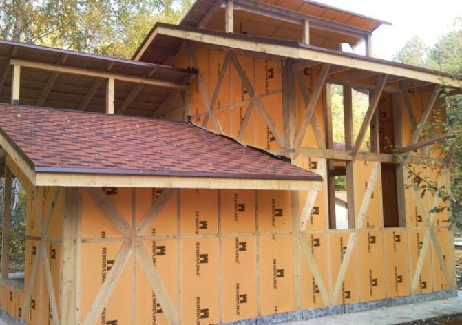 Un lattage d'une barre est attaché aux chevrons. La pente du lattage dépend du type de toiture et varie de 30 à 60 cm Un matériau pare-vapeur est posé sur le dessus de la charpente en bois, en le plaçant en bandes horizontales de la corniche à la crête. Les bandes de film se chevauchent, couvrant la rangée inférieure de 10 à 15 cm.Dans ce cas, le matériau doit légèrement s'affaisser entre les barres, il ne peut pas être tiré. Les joints sont fixés avec du ruban adhésif afin que l'humidité ne pénètre pas dans le système de chevrons.