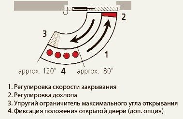 - Dohlop. Autrement dit, contact direct de la porte avec un butin ou un aimant. Il n'est pas souhaitable qu'une porte avec un ferme-porte heurte le cadre de toutes ses forces. Ceci est inconfortable pour l'utilisateur et nocif pour la machine d'encaissement / l'aimant.