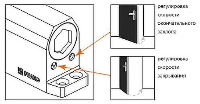 Lors du réglage du ferme-porte, une attention particulière doit être accordée au réglage du verrou. Il s'agit de la vitesse à laquelle la porte franchit le chemin final. Lorsqu'un loquet haute vitesse est sélectionné, il peut claquer avec un crash violent, ce qui détruit la boîte. Par conséquent, il est nécessaire de régler le ferme-porte de manière à ce que la vitesse de fermeture soit faible.