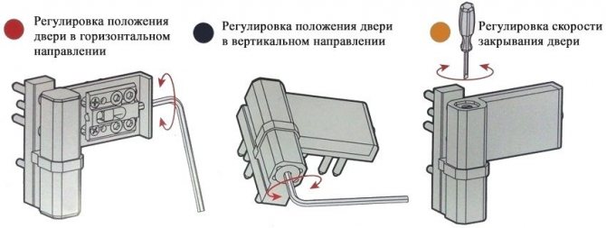 Dans ce cas, il est nécessaire d'ajuster les nœuds des boucles articulées, avec leur aide, la position change dans différentes directions. Nous devons reculer un peu la porte entière vers le support vertical latéral de la boîte.