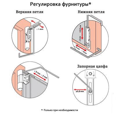 Si ce paramètre est violé, alors la porte touche le seuil lors de l'ouverture / fermeture. Un autre problème est qu'il ne s'incline pas à un angle pour une ventilation intensive de la pièce.