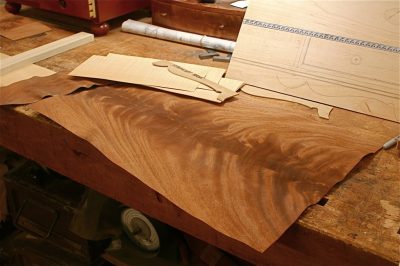 - Dans la zone à restaurer, il est nécessaire de découper une partie du placage endommagé.