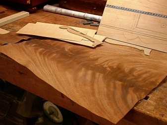 - Un élément du futur patch est appliqué sur la rainure préparée, une position est sélectionnée dans laquelle le motif de placage correspondra, coupé à la taille.