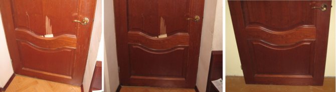 C'est important! Après restauration avec n'importe quelle forme de cire, la surface ne doit pas être vernie ou peinte. Avec le temps, la cire perd de sa résistance et s'effrite, et le vantail de porte verni sera endommagé.