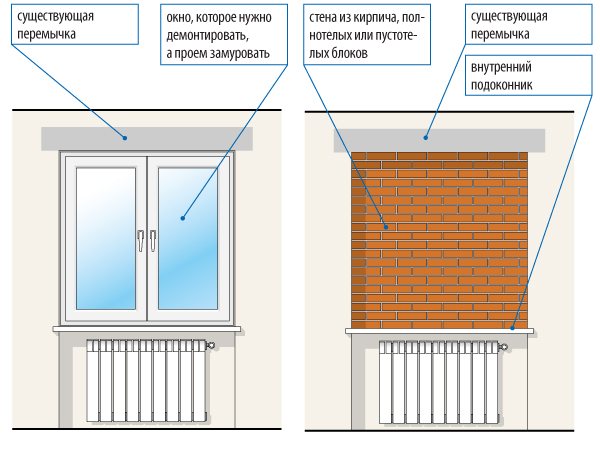Types de maçonnerie pour réduire l'ouverture de la fenêtre.