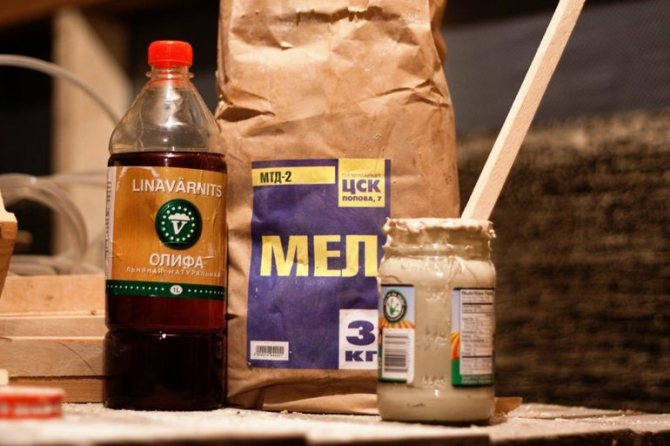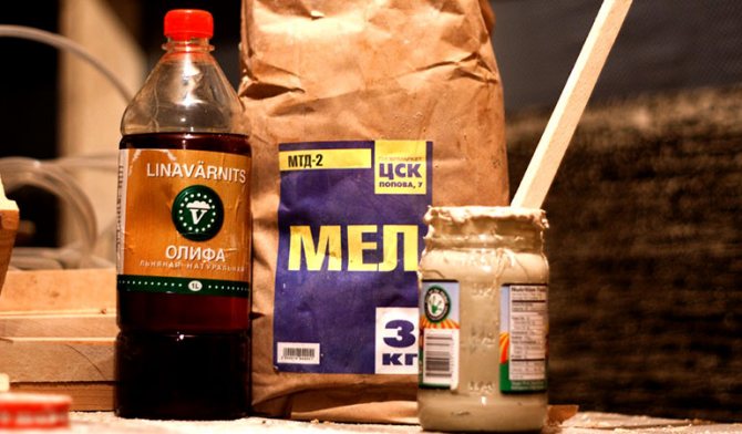 En plus de fixer le verre, un tel mélange peut même restaurer partiellement des structures en bois, fermer de grandes fissures et de petits éclats d'angle. Pour cuisiner, vous avez besoin d'huile de lin (celle habituellement utilisée en cuisine convient) et de craie.
