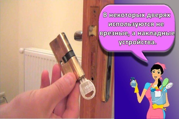 Certaines serrures ne sont pas équipées de poignées supplémentaires. Il est beaucoup plus pratique de travailler avec eux, car vous ne perdez pas de temps à retirer les doublures. Vous pouvez immédiatement dévisser la larve et la sortir du trou de la serrure à l'intérieur de la porte.