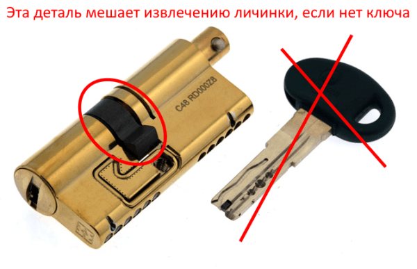 Si la clé est conservée, le retrait du cylindre de serrure est une question de quelques boulons dévissés. Une autre question est, s'il n'y a pas de clé - dans ce cas, la goupille de verrouillage restera en prise avec le pêne et sans destruction physique de la serrure, il est tout simplement impossible de la retirer.