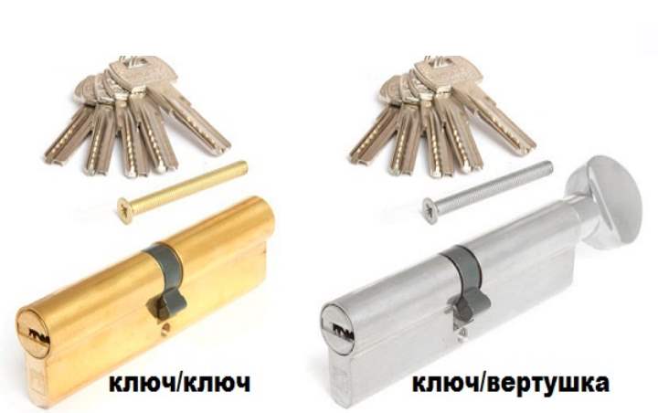 Cette instruction s'applique au mécanisme du cylindre clé et clé (il y a des trous de serrure des deux côtés de la porte qui peuvent être déverrouillés avec des clés) et la clé tournante (il y a un trou de serrure à l'extérieur de la porte et une poignée pour le déverrouillage la porte à l'intérieur). La deuxième option est plus pratique, car elle ne nécessite pas l'utilisation de clés pour ouvrir et verrouiller la serrure de l'intérieur. La poignée tourne facilement, c'est pourquoi on l'appelle plateau tournant.