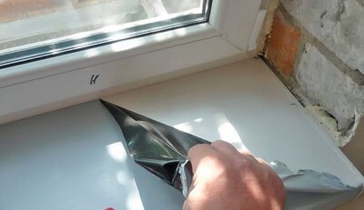 - Ensuite, le rebord de la fenêtre est fixé avec de la mousse de construction. Vous pouvez en outre fixer le produit avec des vis autotaraudeuses.