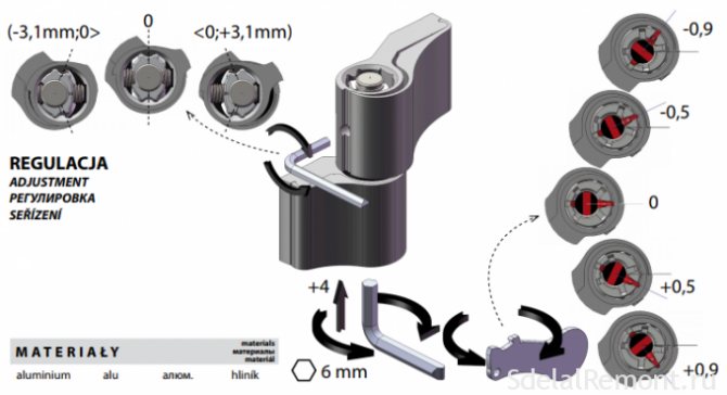 Démontable + il y a un réglage de porte (retirez le couvercle des charnières derrière elles il y aura les boulons des charnières à la boîte) vous avez besoin d'un ensemble d'étoiles et d'hexagones