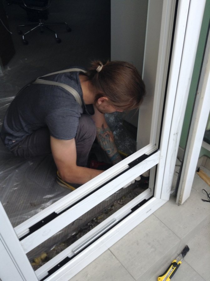2 assistants, entièrement ou pour chevilles de châssis ou plaques d'ancrage. 25min de travail, et réglage sous les superpositions décoratives. Il est plus facile de le mettre complètement tout de suite, l'essentiel est de ne pas le perdre, vous pouvez placer des entretoises avant les entretoises zapenkzazary zapenkoy, après séchage, retirez-les. Et sous le seuil, il est souhaitable sans doublure, il est préférable de le mettre uniformément sur le béton.
