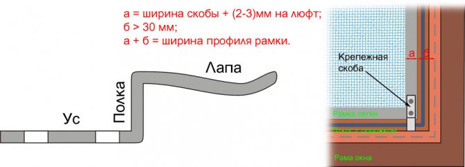 La fixation avec des profilés en Z est décrite ci-dessus et représentée en pos. 1b Fig. A l'extérieur, aux étages supérieurs, cela peut se faire, mais avec un risque mortel, ou avec un relais fiable avec une ceinture d'électricien avec une drisse. Mais un fort vent latéral peut faire bouger le filet, le faire tourner et le casser. La fixation avec des agrafes, pos. 2. Cadre moustiquaire sur supports externes et enfichables diffèrent non seulement par la taille du cadre en maille, mais également par la hauteur de l'étagère des supports de fixation. Dans les désignations des profils typiques, il est indiqué, en mm, par les 2 derniers chiffres; pour fenêtres en plastique typiques - acc. 13 et 7 mm. Par conséquent, avant de commander le treillis, vous devez mesurer la hauteur du rebord de la pente de la fenêtre - du coup, ce n'est pas typique. Ensuite, vous devez informer les artisans de choisir le profil souhaité, sinon le treillis pendra ou ne rentrera pas du tout.