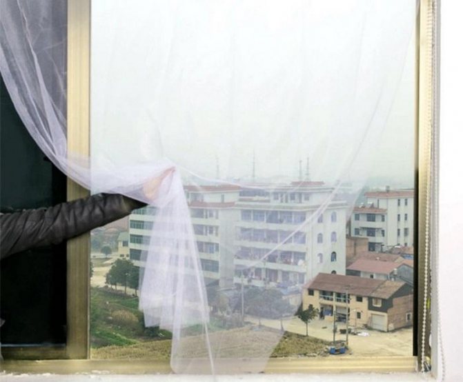 L'un des moyens les plus simples de fabriquer une moustiquaire de vos propres mains consiste à utiliser un matériau spécial et du ruban adhésif.