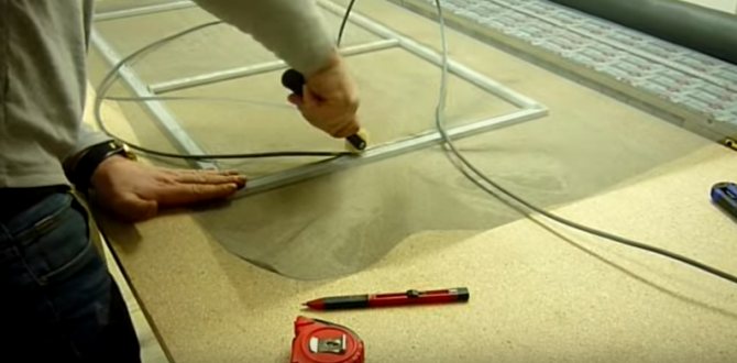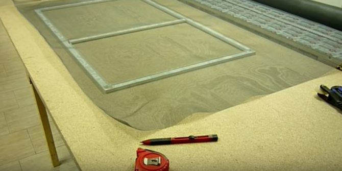 - un treillis est posé sur le cadre préparé du côté de la rainure dans le profilé. Sur tous les côtés, il faut avoir une marge de 2 ... 5 cm minimum;