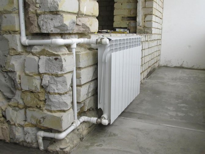 - Faites des trous dans la cloison du mur ou du balcon par lesquels passeront les tuyaux reliant le radiateur et la colonne montante.