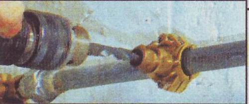 Mais si vous utilisez des vannes à bille, cette opération peut être effectuée même si de l'eau coule à travers les colonnes montantes. La séquence est la même, mais le trou dans la colonne montante n'est pas fait avec un ciseau, mais avec une perceuse avec une perceuse attachée à travers le trou d'une vanne à bille ouverte.