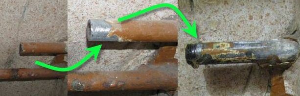 Dans le cas de l'utilisation du soudage sur le tuyau de la colonne montante, un site est préparé. En règle générale, une surface plane (surface plane) est réalisée avec une meuleuse avec une meule d'émeri, laissant une épaisseur de paroi minimale du tuyau.