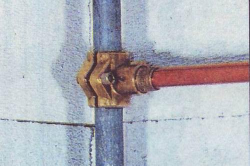 Des tuyaux avec une saillie de 9 cm sont conduits à travers le mur et à leurs extrémités, des filetages sont réalisés de la même manière pour la fixation des ferrures d'angle.