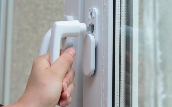 La poignée de la fenêtre en plastique fait partie du mécanisme de verrouillage.