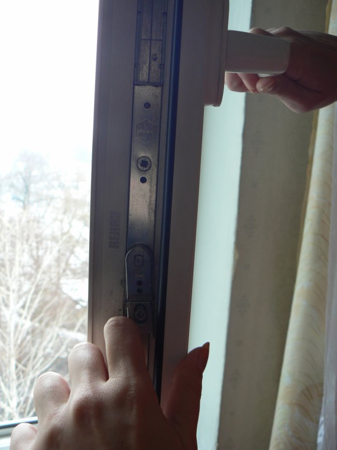 Si, lorsque vous essayez de fermer la fenêtre, vous ne tournez toujours pas la poignée, vous devez vérifier si le bloqueur est en contact avec le mécanisme de réponse. Une situation est possible lorsque le bloqueur passe sans s'accrocher au mécanisme. La raison est la dilatation thermique.