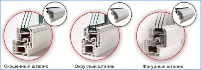La surface extérieure du cordon de vitrage en PVC a une forme différente et, selon la solution de conception, peut être ronde, rectangulaire, bouclée. Une autre caractéristique des parcloses en plastique est une largeur différente, ce qui vous permet de placer des unités de verre de n'importe quelle épaisseur standard dans l'ouverture de la fenêtre sans changer la conception ou remplacer le châssis de la fenêtre.