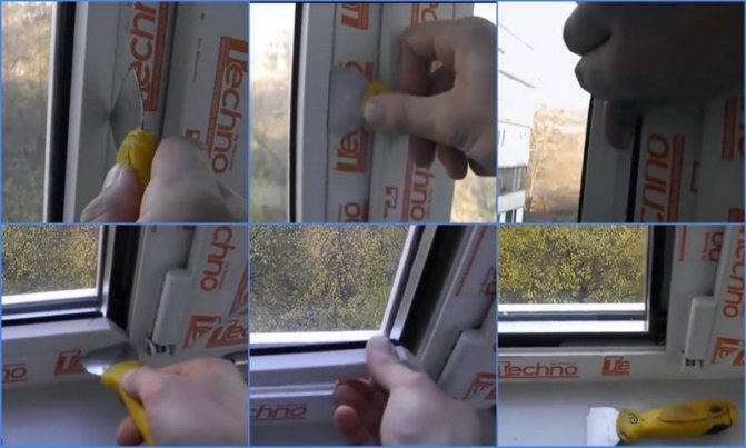 - Pour commencer, vous devez couper légèrement la couche de scellant sur le vitrage. Il est préférable d'utiliser un couteau de construction pour cela.