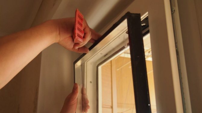 - Ensuite, le cadre de la fenêtre est nettoyé avec une éponge humide pour éliminer la saleté adhérente et les résidus de la bande de protection.