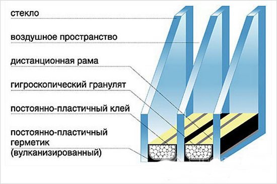 - Fenêtre à double vitrage. Fait de feuilles transparentes collées sur des cadres en aluminium. Il est fixé dans l'ouverture à l'aide de parcloses en plastique munies de joints.