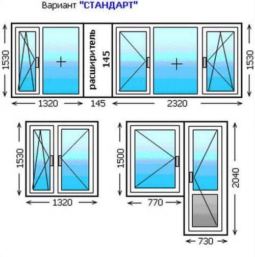 Important! Les dimensions d'une fenêtre en plastique classique à deux châssis sont de 130 cm de haut et 140 cm de large. Si la fenêtre est tricuspide, les dimensions standard seront de 206 cm de large et 140 cm de haut