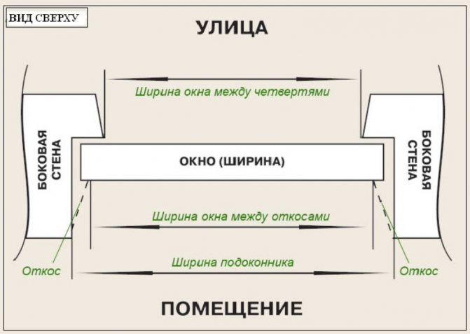 Dans ce cas, les mesures prendront un peu plus de temps, car vous devrez tenir compte de la taille des quartiers; vous devrez prendre des mesures des côtés extérieur et intérieur de l'ouverture de la fenêtre. Il est plus pratique de commencer par les parois latérales. Pour éviter toute confusion, attribuez une lettre aux côtés mesurés: par exemple, la distance A entre les quartiers des parois latérales. Une fenêtre standard doit s'étendre de 1,5 à 2 cm au-delà des pentes extérieures. Lorsque vous obtenez la distance souhaitée, ajoutez-y 5 cm de chaque côté. Cela vous donnera la largeur d'ouverture d'origine; nous le désignons par Sh.