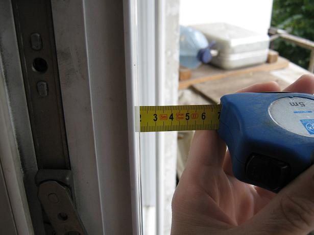 Mesure des dimensions d'une fenêtre à double vitrage dans des fenêtres en plastique (la distance entre les sièges pour les parcloses de fenêtre est de moins 10 mm.).
