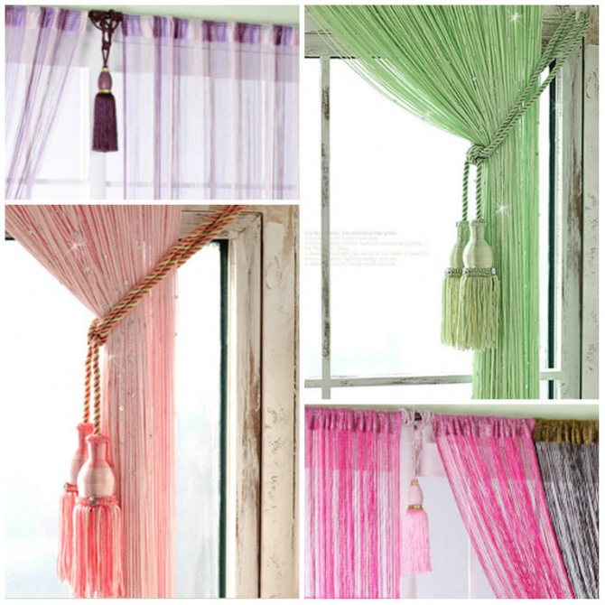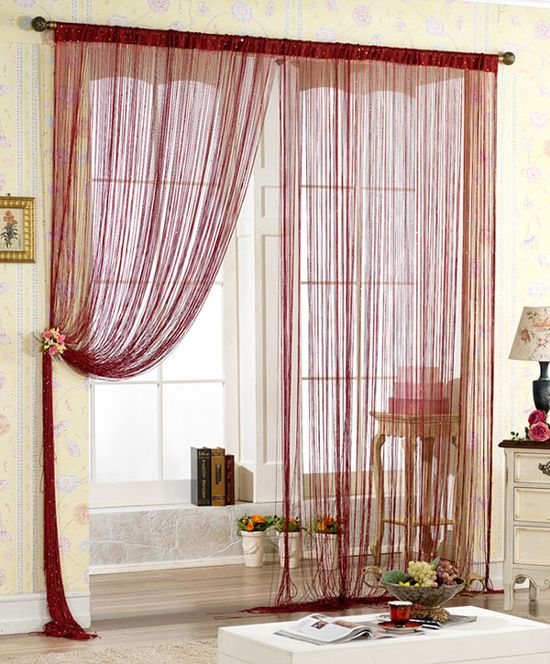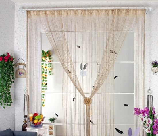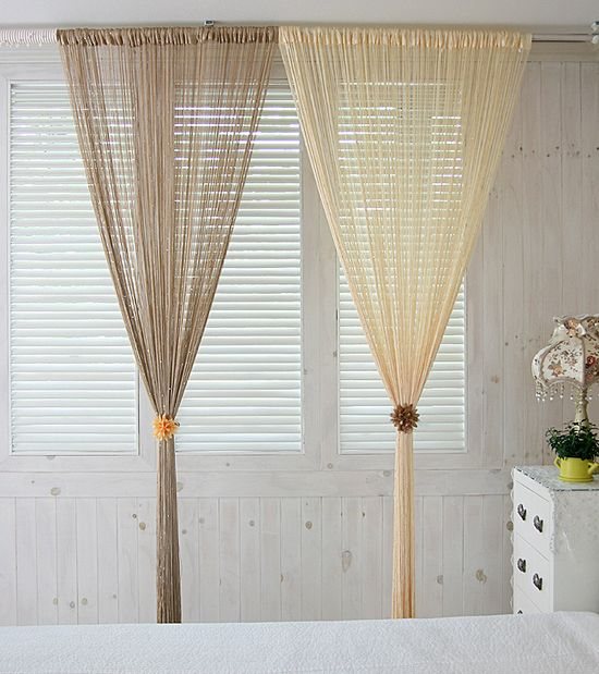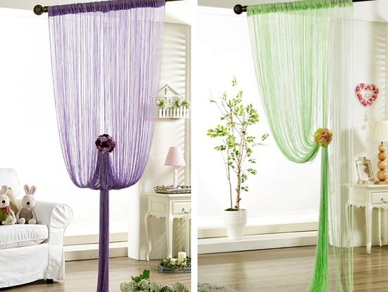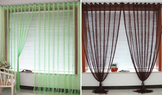 La mousseline à ficelle est beaucoup plus pratique qu'un voile de fenêtre solide. Ils n'ont pas besoin d'être déplacés le long de la corniche pour ouvrir une fenêtre ou une porte de balcon. En passant à travers un rideau de porte fait de bambou, de bois ou de perles de verre, vous n'avez pas besoin de saisir vos mains pour rejeter ces fragments, surtout lorsque vous devez rapporter quelque chose.