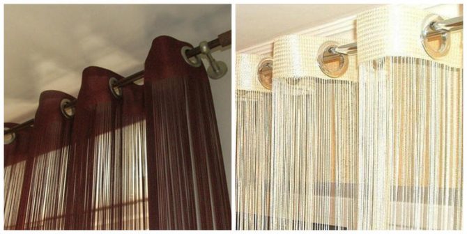 - Oeillets. Ils sont intégrés dans le tissu et posés sur une corniche ronde.
