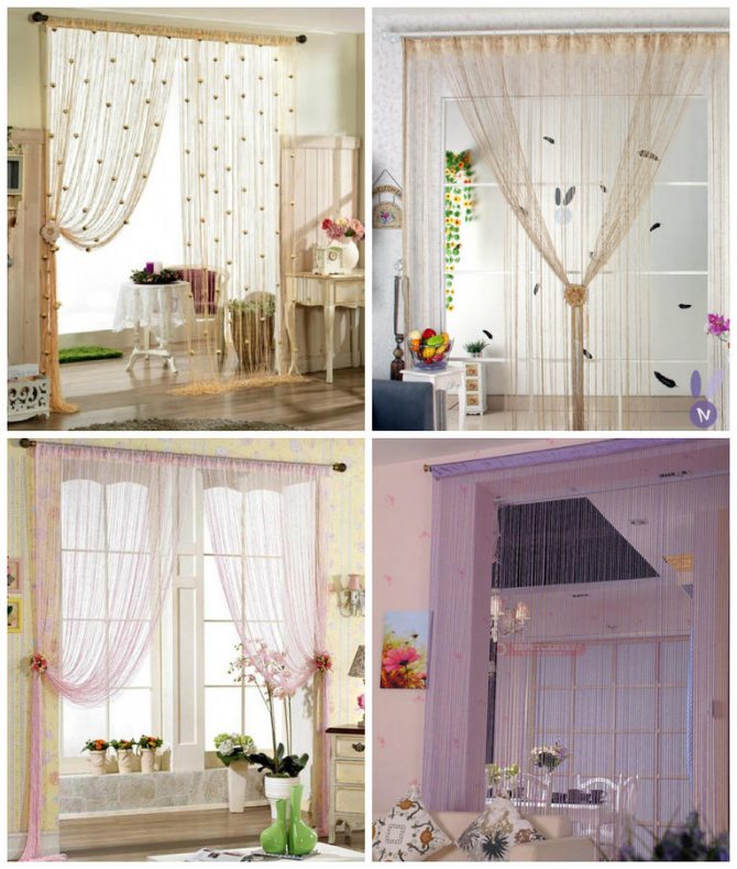 La conception de rideaux faits de fils, de perles, de verre et de bois peut être vraiment belle, incomparable.Votre tâche est seulement de les accrocher correctement, de les draper magnifiquement.