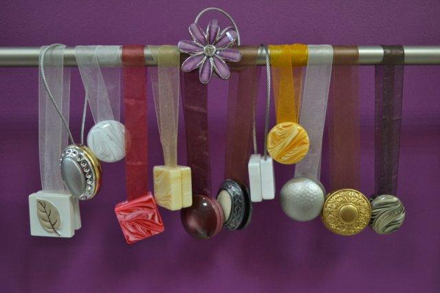 - Sous forme d'anneaux qui glissent facilement le long de la barre, ils se fixent à la matière par des boucles.
