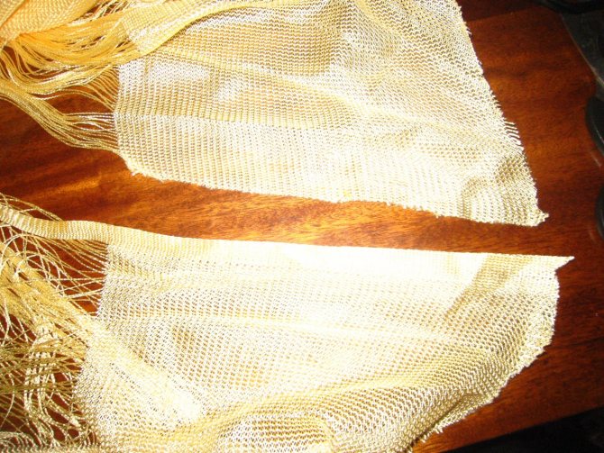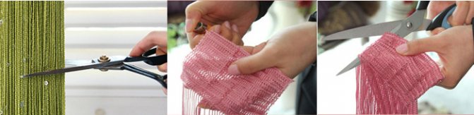 Il est nécessaire d'attacher solidement le tissu à l'aide de la couture finale obligatoire. Comme méthode alternative de fixation, un cordon torsadé est utilisé, dont la longueur est légèrement plus longue que la longueur du rideau. Dans ce cas, vous pouvez nouer un nœud aux deux extrémités.
