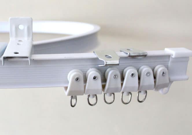 - Sous la forme d'une barre. Ils sont fixés au mur avec des équerres. Ils se composent de plusieurs guides sur lesquels sont accrochés du tulle ou des rideaux. Le matériau des toiles est relié par des anneaux qui se déplacent librement le long de la barre.