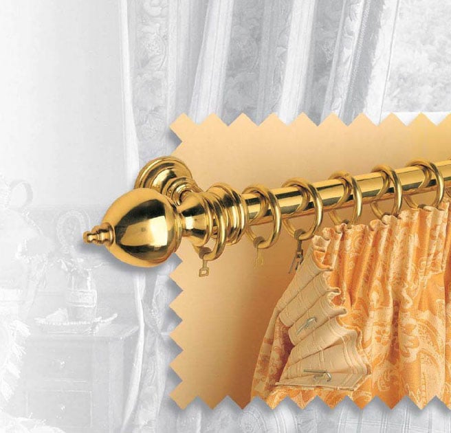 - Boucles cousues au tissu du rideau et posées sur une corniche ronde.