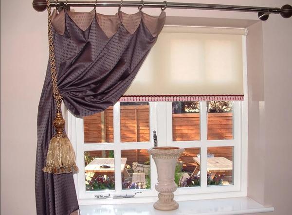 Une approche créative vous permet de fabriquer des cintres à partir de n'importe quoi sous la main. Le plus souvent, sur les fenêtres, vous pouvez trouver des rideaux romains qui donnent de la légèreté à la pièce. La densité et le ton du matériau sont choisis en tenant compte des caractéristiques stylistiques de la pièce.