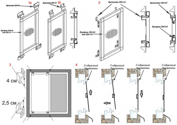 Le plus souvent, ce sont les moustiquaires à cadre qui sont installées. Il y a deux façons de les attacher: les supports en Z et les tiges (plongeurs).